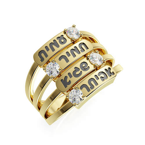 טבעת 4 שמות ים אהבה יהלומים